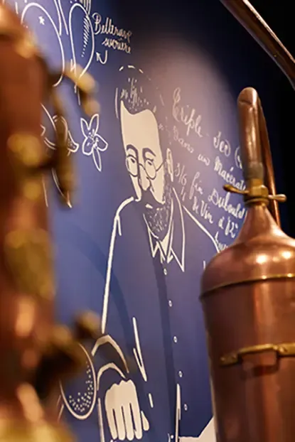 Démonstration et dégustation de cocktails à la fin de la visiteUne mise en scène moderne et élégante de 170 ans d’histoire